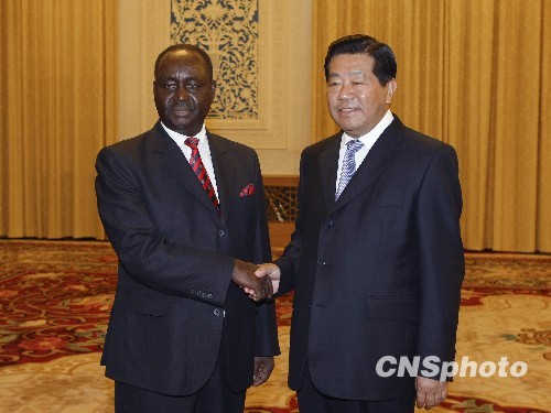 9月11日,中国全国政协主席贾庆林在北京人民大会堂会见了来访的中非总统博齐泽。中新社发 盛佳鹏 摄