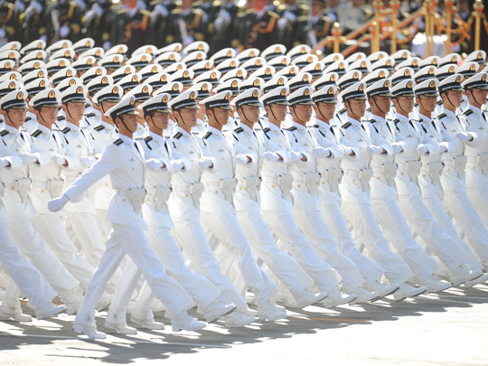 10月1日,首都各界庆祝中华人民共和国成立60周年大会在北京举行。这是海军学员方队接受检阅。