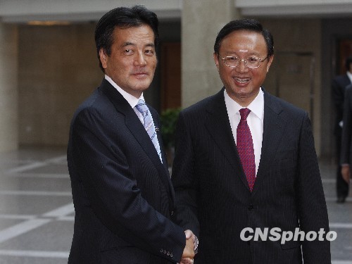 10月9日,中国外交部部长杨洁篪在北京会晤日本外相冈田克也。中新社发 盛佳鹏 摄