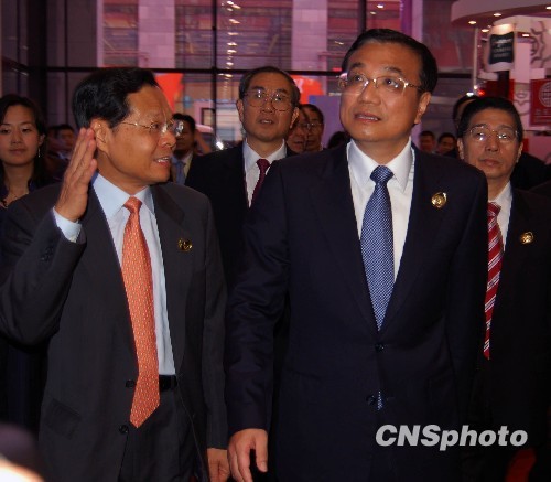 10月19日,中共中央政治局常委、国务院副总理李克强(右)抵达广西南宁,出席将于10月20日开幕的第六届中国—东盟博览会。当天下午,李克强到南宁国际会展中心巡视中国—东盟博览会展馆,并与老挝总理波松一起出席本届博览会“主题国”老挝展馆开馆仪式。中新社发 刘万强 摄