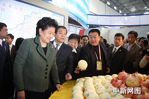 第十六届中国杨凌农高会,一日在中国惟一的农业高新技术产业示范区——杨凌农业高新技术产业示范区开幕。图为中共中央政治局委员、国务委员刘延东参观展馆。