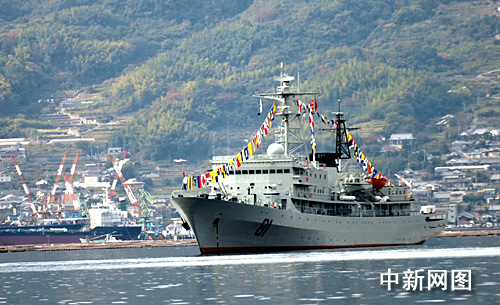 11月5日当时时间10时,中国海军训练舰“郑和号”抵达日本江田岛,开始为期五天的对日访问交流。这是中国海军军舰第二次来到日本。日方将于当天13时在海上自卫队第一术科学校举行欢迎仪式,迎接“郑和号”的到来。中新社记者 朱沿华 摄
