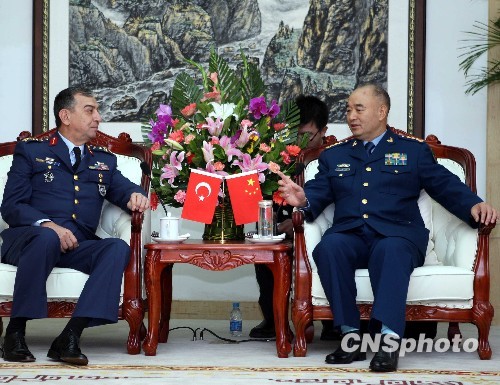 11月5日上午,空军司令员许其亮会见抵京的土耳其空军代表团一行。中新社发 宋吉河 摄