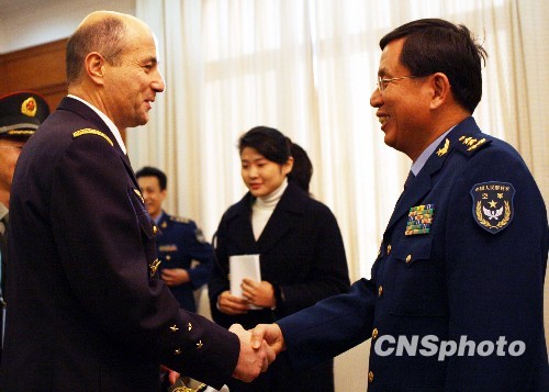 11月5日上午,空军副司令员陈小工会见抵京的法国空军代表团团长。中新社发 宋吉河 摄