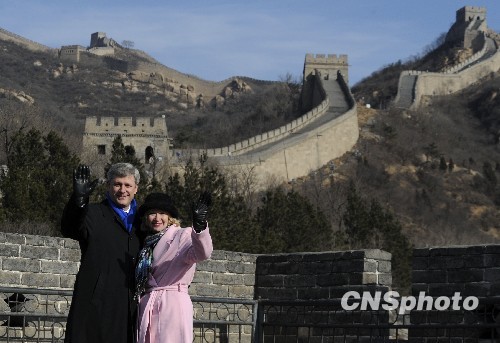 加拿大总理哈珀和夫人劳伦游览北京长城