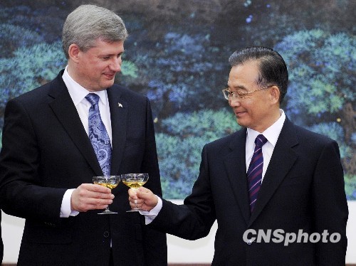 温家宝、哈珀碰杯庆祝中加双边签署相关协议——中新网