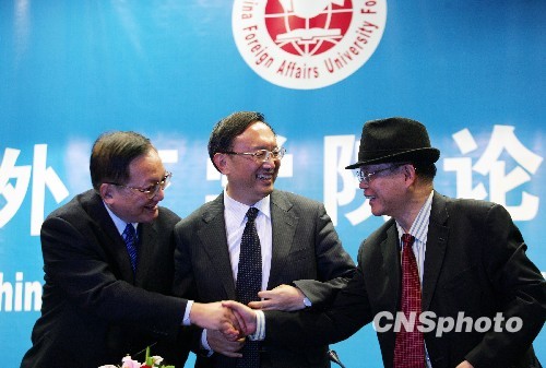 应外交学院院长赵进军邀请,前国务委员唐家璇12月4日做客“外交学院论坛”,谈新书《劲雨煦风》。外交部长杨洁篪、前驻德国大使卢秋田作为特邀嘉宾出席。中新社发 刘震 摄
