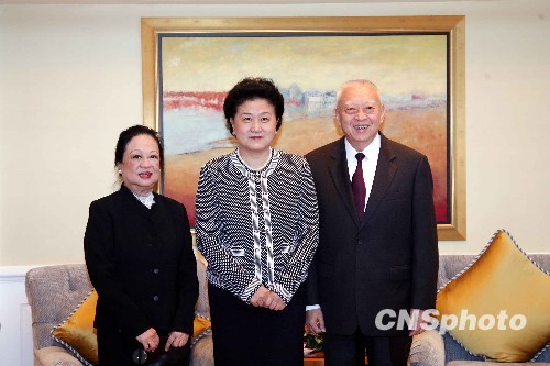 十二月六日上午,访港的中共中央政治局委员、国务委员刘延东在下榻酒店与全国政协副主席董建华伉俪会面并共进早餐。中新社发 洪少葵 摄