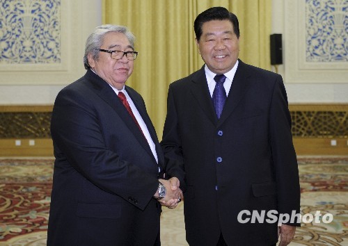 12月7日,中国全国政协主席贾庆林在北京人民大会堂会见了印尼人民协商会议主席陶菲克一行。中新社发 廖攀 摄