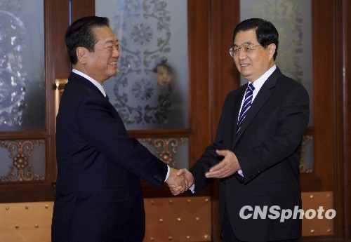 12月10日,中共中央总书记、国家主席胡锦涛在北京人民大会堂会见了以干事长小泽一郎为名誉团长的日本民主党代表团暨第十六次“长城计划”代表团。中新社发 廖攀 摄