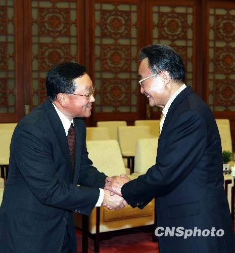 十二月十日,吴邦国委员长在北京人民大会堂会见美国“百人会”代表团成员。中新社发 任海霞 摄