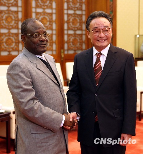 十二月十一日,吴邦国委员长在北京人民大会堂会见喀麦隆议长卡瓦耶一行。中新社发 任海霞 摄