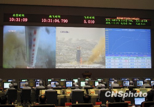12月15日,中国在太原卫星发射中心以一箭双星方式,用“长征四号丙”运载火箭将“中国遥感卫星八号”成功送入太空,搭载发射的中国首颗公益小卫星“希望一号”也顺利进入预定的太阳同步轨道。图为点火发射时太原卫星发射中心指控大厅场景。中新社发 马杰 摄