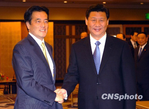 12月16日上午,正在日本进行正式访问的中国国家副主席习近平在东京会见了日本外相冈田克也。中新社发 朱沿华 摄