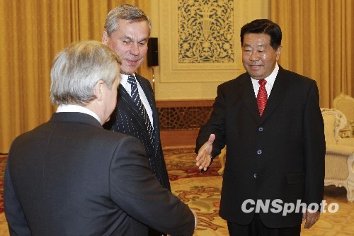 12月16日,全国政协主席贾庆林在北京人民大会堂会见由白俄罗斯国民会议代表院主席安德烈琴科率领的白俄罗斯国民会议代表团一行。中新社发 盛佳鹏 摄