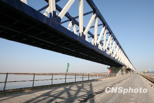 12月17日上午,长度为1684米的河南郑州黄河公铁两用桥的主桥钢梁合龙。大桥公铁合建长度达到9177米,是石武铁路客运专线和新107国道辅道跨越黄河的特大型公铁两用桥,也是迄今为止世界上最长的公铁合建桥梁。中新社发 王中举 摄