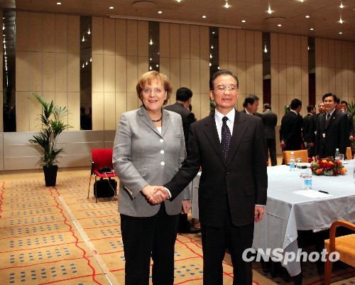当地时间12月17日下午,中国国务院总理温家宝在哥本哈根会见了德国总理默克尔。中新社发 余湛奕 摄
