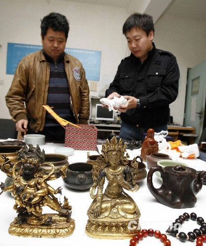 近日,北京海淀警方成功破获巨额入室盗窃案件,价值300余万元的古玩、珠宝等物品被全部追回。中新社发 吴建中 摄