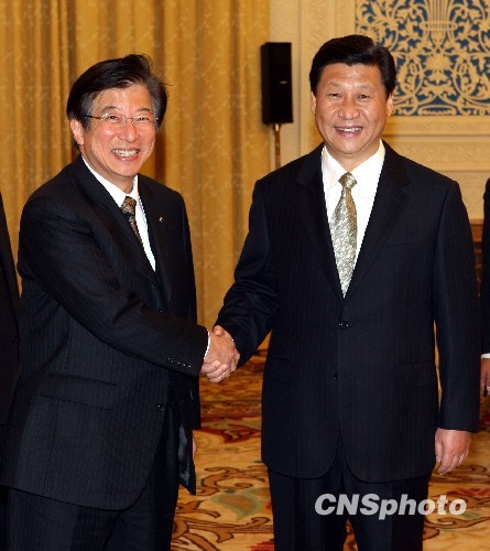 一月十一日,中国国家副主席习近平在北京人民大会堂会见日本静冈县知事川胜平太一行。中新社发 任海霞 摄