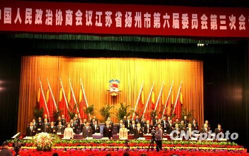 1月18日,中国人民政治协商会议江苏省扬州市第六届委员会第三次会议在扬州会议中心开幕。扬州市委书记王燕文作题为“坚持以民为本,建设幸福扬州”讲话。中新社发 崔佳明 摄