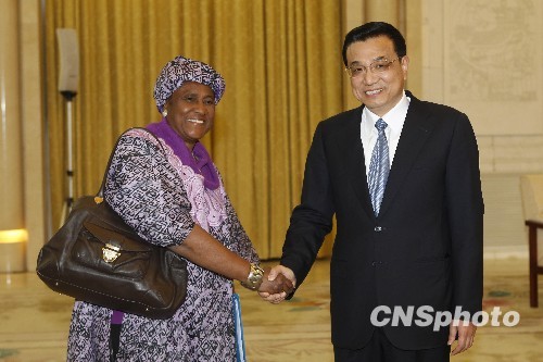 1月22日,中国国务院副总理李克强在北京人民大会堂会见了利比里亚外长奥卢班克·金·阿克雷尔。中新社发 盛佳鹏 摄