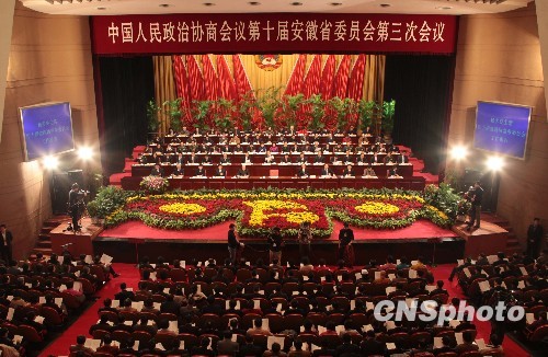 1月24日,安徽省政协十届三次会议在安徽省大剧院拉开帷幕。大会将于1月28日闭幕,会期5天。来自全省各党派团体、各界别的政协委员会聚一堂。当天上午,会议听取和审议省政协主席杨多良作十届省政协常务委员会工作报告,听取和审议省政协副主席方兆本作省政协常务委员会关于十届二次会议以来提案工作情况的报告。中新社发 张娅子 摄