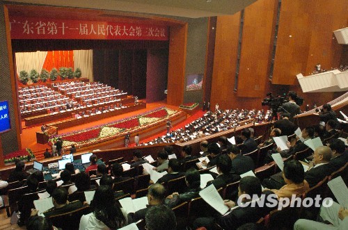 1月29日,广东省十一届人大三次会议在广州白云国际会议中心开幕。会议将听取和审议省政府工作报告、省人大常委会工作报告以及“两院”工作报告,并选举省第十一届人大常委会部分组成人员。中新社发 罗仰明 摄