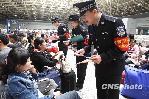 2月1日,广州东火车站派出所的民警在候车大厅开展客票调查工作。广州铁路公安局为打造和谐春运氛围,构建公平有序的购票环境,进一步增加旅客对铁路运输的满意度,投入566名民警开展客票调查工作,通过耐心的询问、细心的发现,海查旅客车票,从中发现可疑票源,为治安部门的深入调查整治、有效打击倒卖车票分子提供精准的信息。中新社发 丁勇 摄