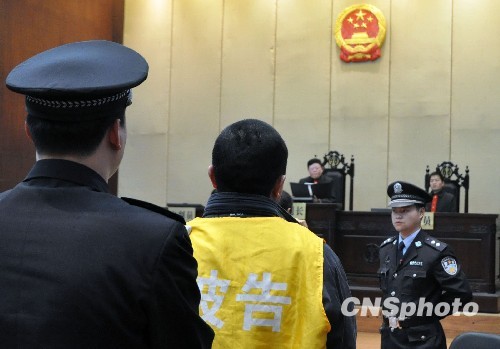 2月5日,重庆陈坤志等18人涉黑案在重庆第三中级人民法院一审宣判,陈坤志(黄衣)犯组织、领导黑社会性质组织罪和故意杀人罪、非法经营罪、行贿罪、高利转贷罪,非法拘禁罪,赌博罪七项罪名判处死刑,缓期两年执行,剥夺政治权利终身,并处罚金人民币三亿零二万元。宣判后,陈坤志当庭表示上诉。中新社发 杨君相 摄