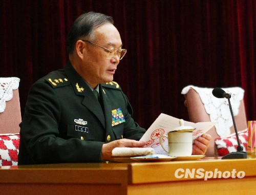圆满完成赴海地人道主义救援任务的中国医疗防疫救护队,2月10日上午乘专机回到北京,下午解放军总政治部副主任贾廷安中将,在北京八一大楼宣读解放军四总部表彰医疗防疫救护队的通报,号召全军官兵向他们学习。中新社发 宋吉河 摄
