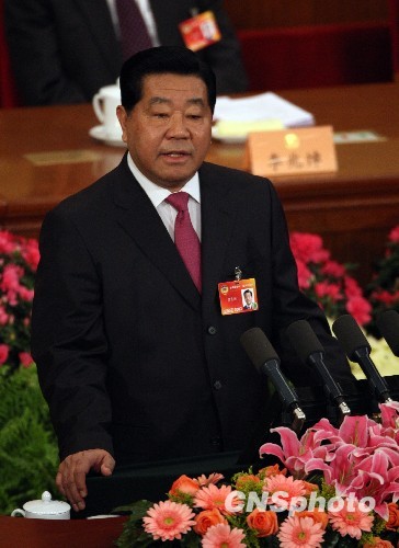 3月3日,全国政协十一届三次会议在北京人民大会堂开幕。全国政协主席贾庆林作全国政协常委会工作报告。中新社发 汤彦俊 摄