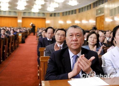 3月3日下午,全国政协十一届三次会议在北京人民大会堂开幕,新增补的全国政协委员何厚铧在听会。中新社发 廖攀 摄