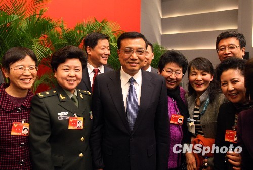 3月4日,中共中央政治局常委、国务院副总理李克强参加全国政协医卫、对外友好、社会福利和社会保障界联组讨论会,认真听取委员们的建议,并提前祝女委员“三八”节快乐。中新社发 汤彦俊 摄