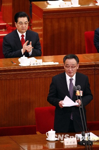 3月5日,第十一届全国人民代表大会第三次会议在北京召开。全国人大常委会委员长吴邦国主持会议。中新社发 杜洋 摄