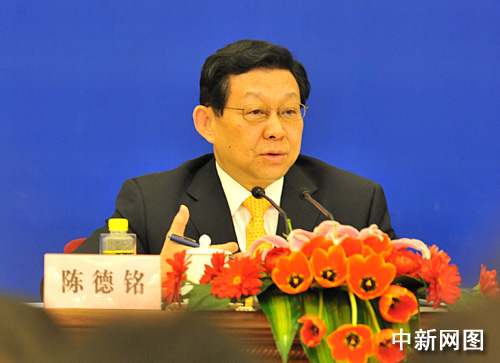 3月6日上午10点,国家发展和改革委员会主任张平、财政部部长谢旭人、商务部部长陈德铭、中国人民银行行长周小川在人民大会堂三楼金色大厅就加强和改善宏观调控问题答记者提问。 中新网记者 贾国荣 摄
