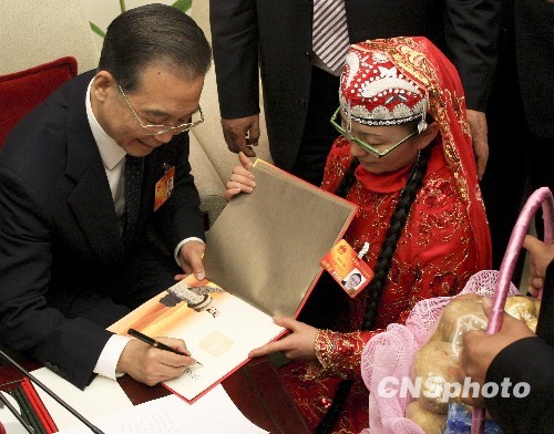 3月6日,中共中央政治局常委、国务院总理温家宝参加甘肃代表团会议。会议结束后,温家宝应邀为民族代表签名。