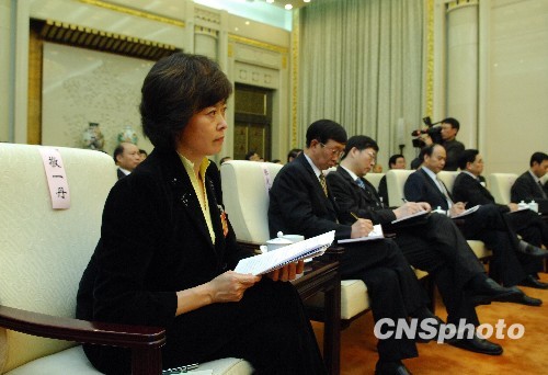 3月7日下午,全国人大代表、著名主持人敬一丹在北京人民大会堂参加十一届全国人大三次会议江西代表团全体会议,审议政府工作报告。中新社发 侯宇 摄