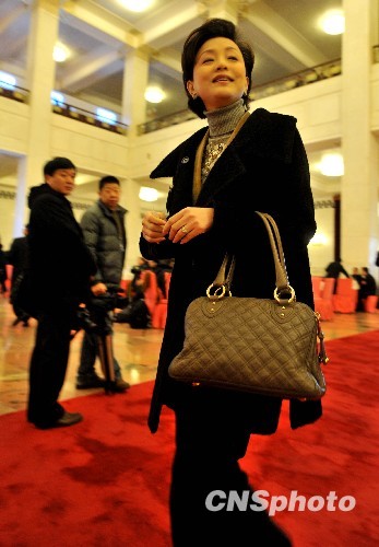 3月9日上午,全国政协委员、资深电视节目主持人杨澜走进人民大会堂,参加全国政协十一届三次会议第三次全体大会。她刚制作了一个关于“蚁族”生存近况的节目,认为“蚁族”就业去二三线城市可以活的更好。中新社发 贾国荣 摄