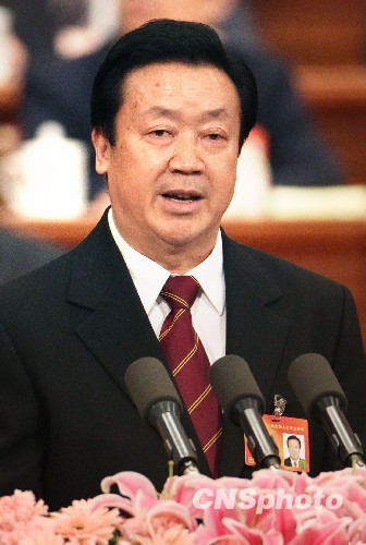 3月11日下午,第十一届全国人民代表大会第三次会议在北京人民大会堂举行第四次全体会议,听取最高人民法院院长王胜俊作最高人民法院工作报告;听取最高人民检察院检察长曹建明作最高人民检察院工作报告。图为王胜俊作最高人民法院工作报告。中新社发 任晨鸣 摄