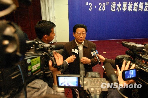 3月29日上午9点30分,“3 28”王家岭煤矿透水事故新闻发布会召开,相关负责人向媒体介绍抢险进度情况。中新社发 张云 摄