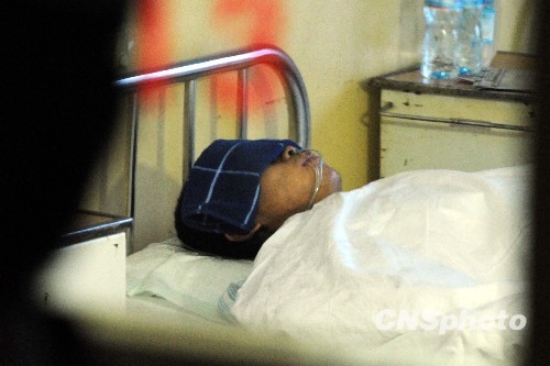 4月5日,一名获救者在山西铝厂职工医院病房内。目前36名获救工人已经在此接受救治,此外部分获救者被送往河津市人民医院等医院救治。据了解,每个获救工人都有个性化的治疗方案,主要是输液和输氧。 中新社发 刘冬 摄