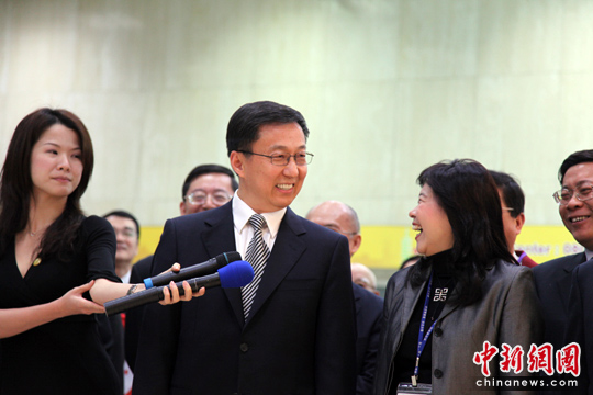 4月6日上午11时许,上海市长韩正率团搭乘班机抵达台北松山机场,展开以深化双城合作、推介上海世博为主轴的“携进之旅”。