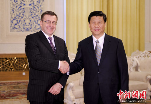 4月6日,中国国家副主席习近平在北京人民大会堂会见了比利时副首相兼外交大臣瓦纳克尔。中新社发 廖攀 摄