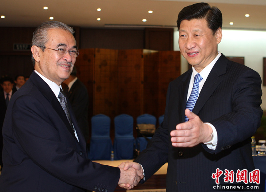 4月9日上午,中国国家副主席习近平在海南会见前来参加“博鳌亚洲论坛2010年年会”的马来西亚前总理巴达维。中新社发 任晨鸣 摄