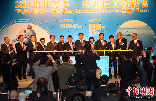 图为位于海峡西岸的福建省宁德市,在会展中心举办的“招商会”上向港商推介50个合作投资项目。中新社发 郑祚声 摄