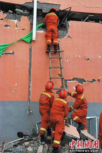 4月15日,西藏消防总队首批赴青海玉树参加地震救援力量——昌都消防支队地震救援分队闻听经当地群众反映,玉树建筑工程队小区有10余人被埋,昌都救援分队立即投入救援。中新社发 陶盛楷 摄