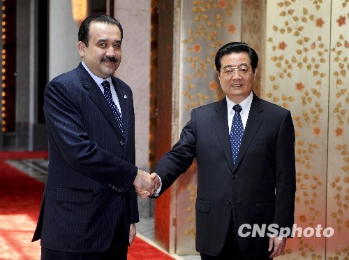 4月30日,中国国家主席胡锦涛在上海西郊宾馆会见前来出席上海世博会开幕式的哈萨克斯坦总理马西莫夫。中新社发 廖攀 摄