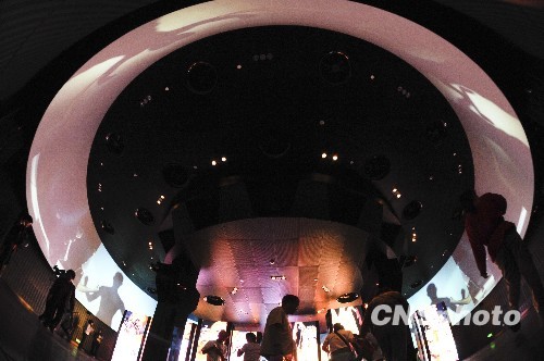 5月3日,上海世博园香港城市案例馆内,360°银幕展现“东方之珠”的风采。中新社发 廖攀 摄