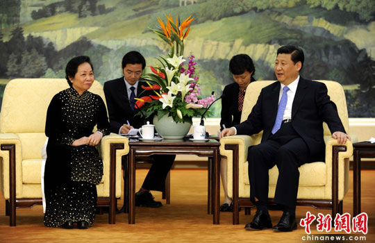 5月20日,中国国家副主席习近平在北京人民大会堂会见了越南国家副主席阮氏缘一行。中新社发 廖攀 摄
