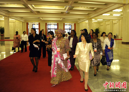 5月20日,中国国家副主席习近平在北京人民大会堂会见出席2010年全球妇女峰会的各国政要。图为参加会见的政要们步入大会堂。中新社发 廖攀 摄
